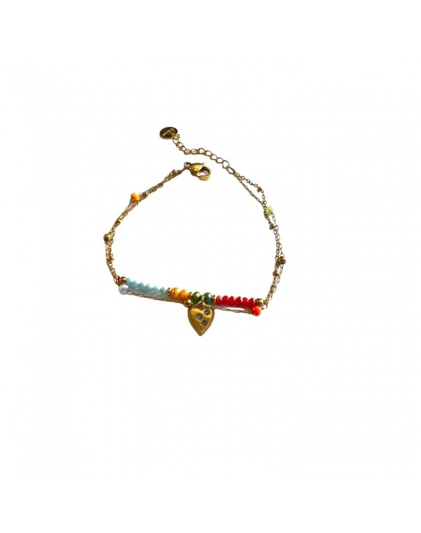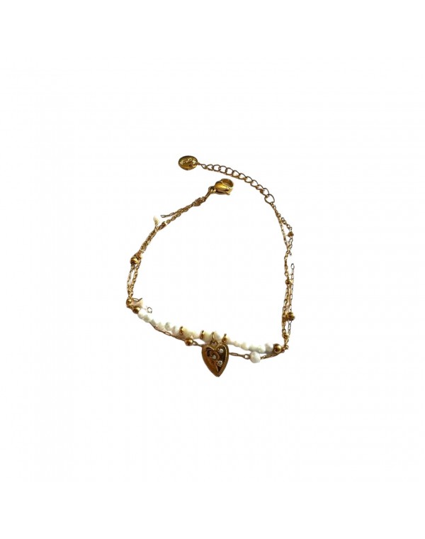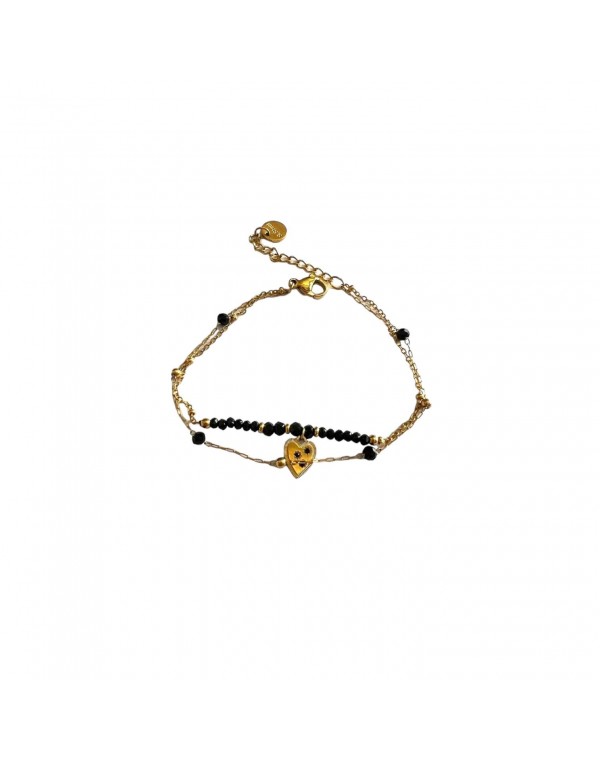 Bracelet double rangs réglable en acier inoxydable avec coeur